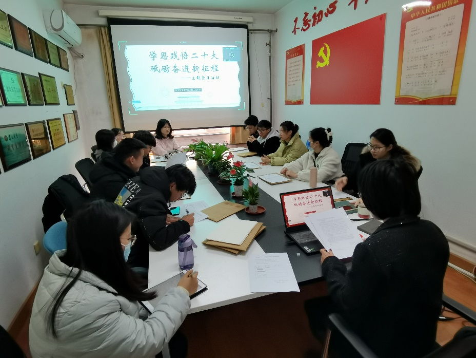11月30日,为全面学习贯彻党的二十大精神,YABO鸭脖官网本科生党支部在励行楼会议室开展“学思践悟二十大 砥励奋进新征程”主题党日活动,支部所有党员参加,因疫情未返校的党员线上参会。