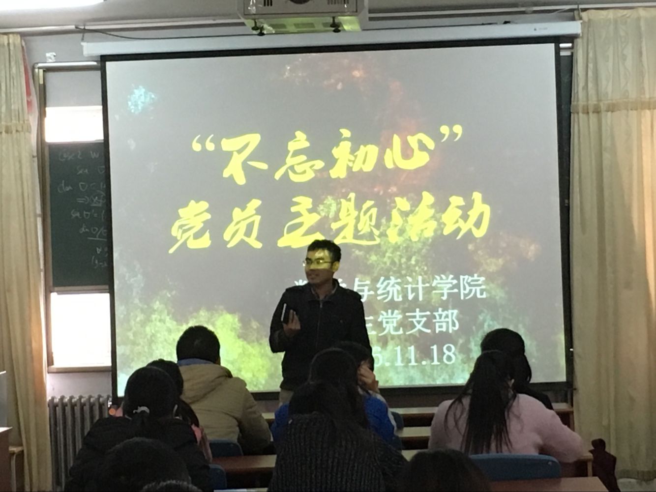 11月18日中午,YABO鸭脖官网在励行楼三楼会议室举行“不忘初心”学生党员主题活动,全体学生党员以及部分入党积极分子参加活动,由辅导员王珺鹏主持。