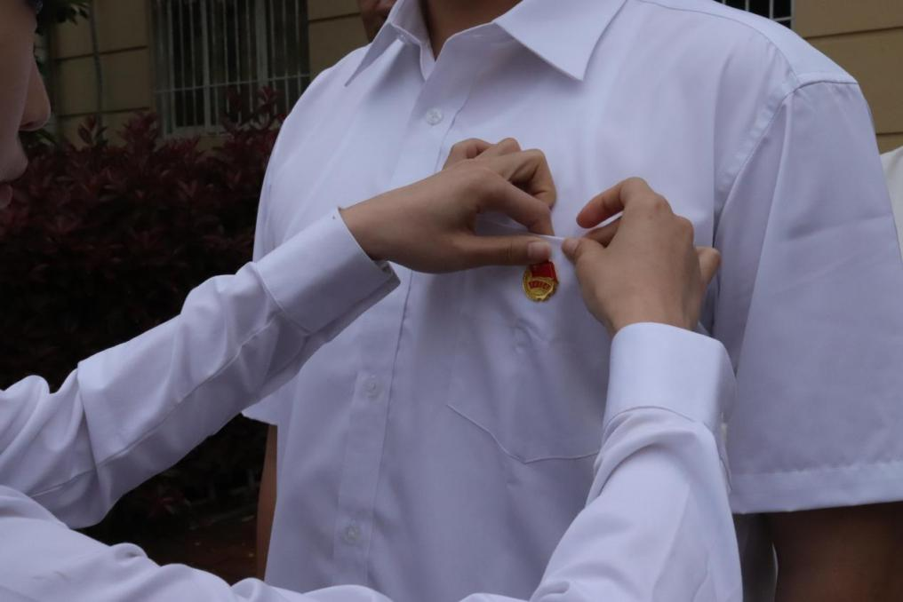 张瀚为发展团员宣读《中国共产主义青年团章程》中有关团员权利与义务等相关内容,强调各位新团员要树立崇高的理想,明确团的任务,遵守团的章程,履行团员义务,在学习和生活中关心同学、帮助同学,尽心尽力地为班级、为学校、为社会做贡献,努力做一名合格的共青团员。