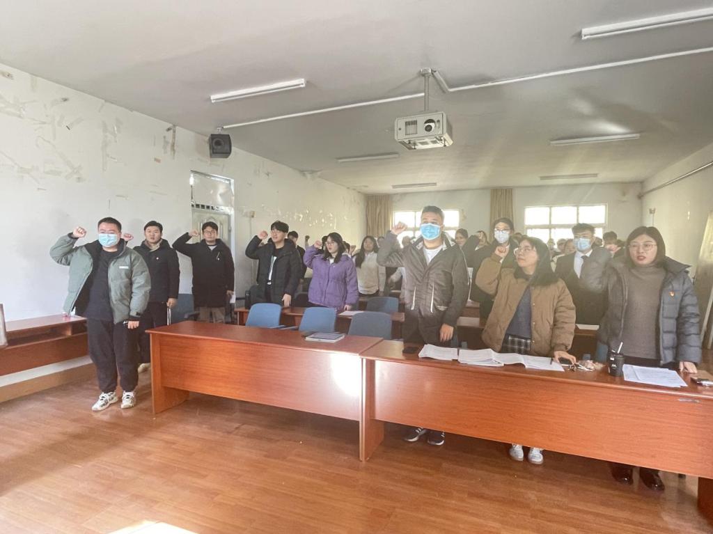 会议由本科生党支部书记朱雨彤同志主持。支部全体党员和拟发展预备党员参加。大会根据《中国共产党章程》和《中国共产党发展党员工作细则》要求,讨论吸收殷博文等22名党员发展对象成为中国共产党预备党员的事宜。