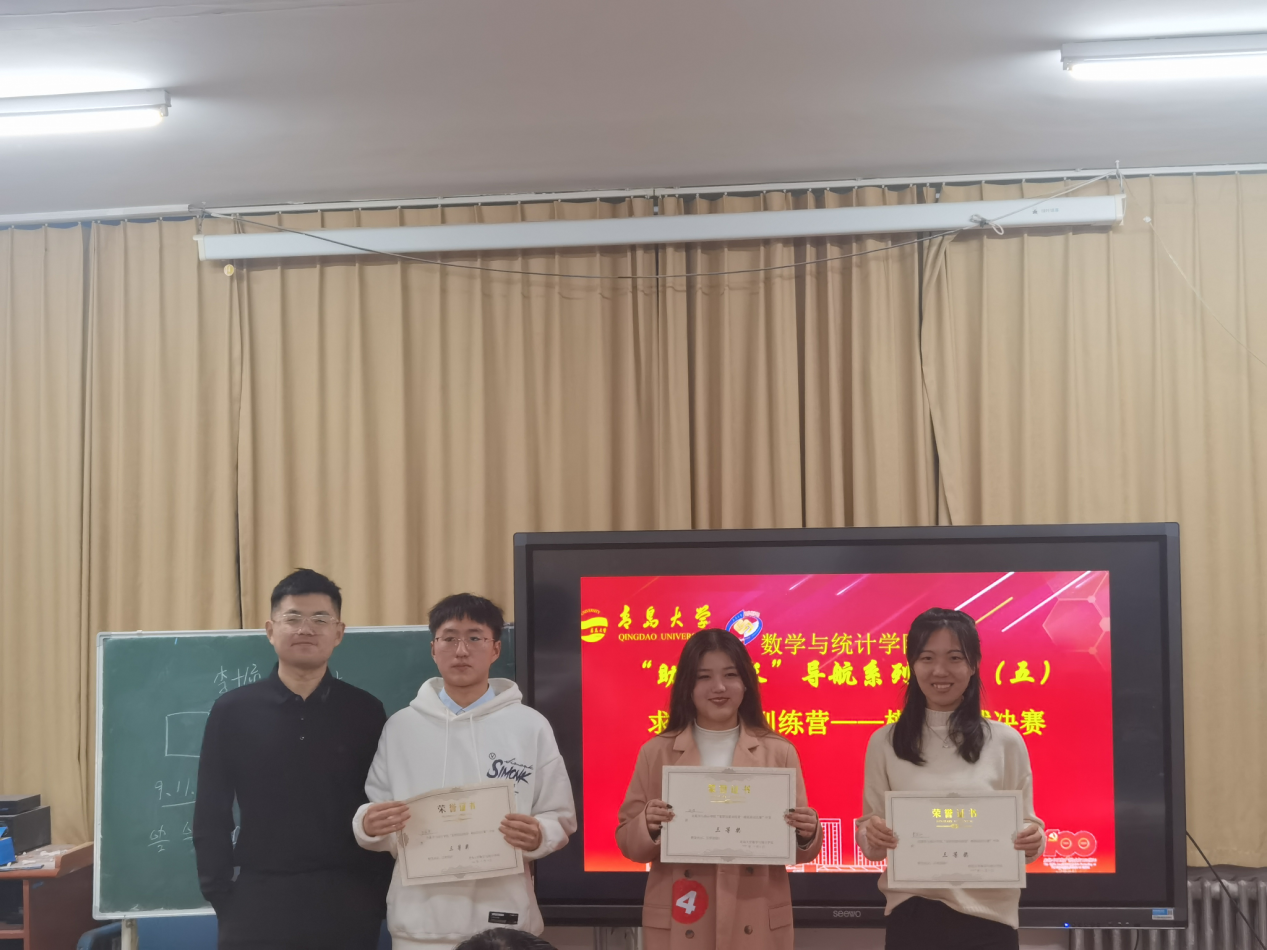 优秀奖:应数一班袁琳涵、应数一班高昱娜、应数三班薛浩田、统计二班林皓月