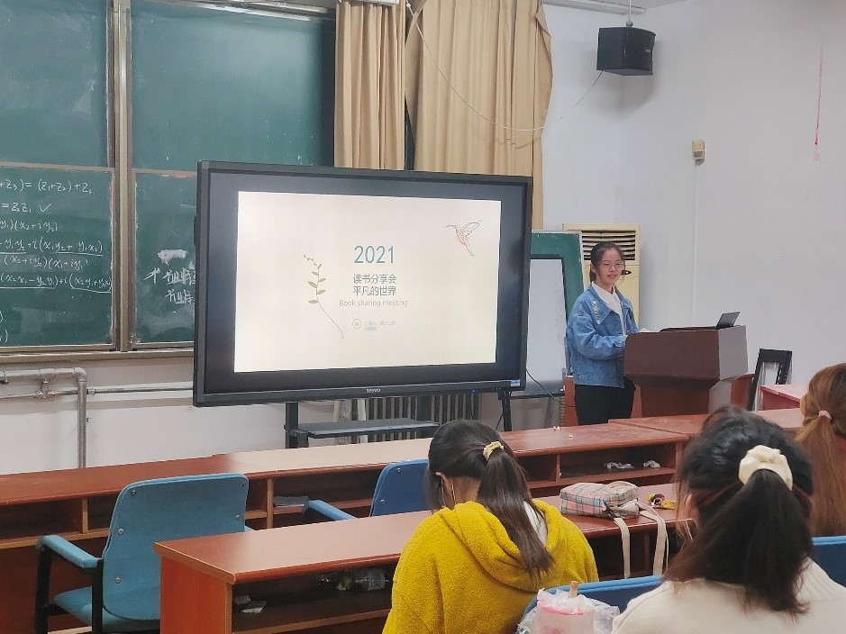 应数二班曹贺同学带来的是杨绛先生的著作《我们仨》, 讲述了一个单纯温馨的家庭几十年平淡无奇、相守相助、相聚相失的经历,带我们重温了杨绛先生一家那些快乐而艰难、爱与痛的日子。