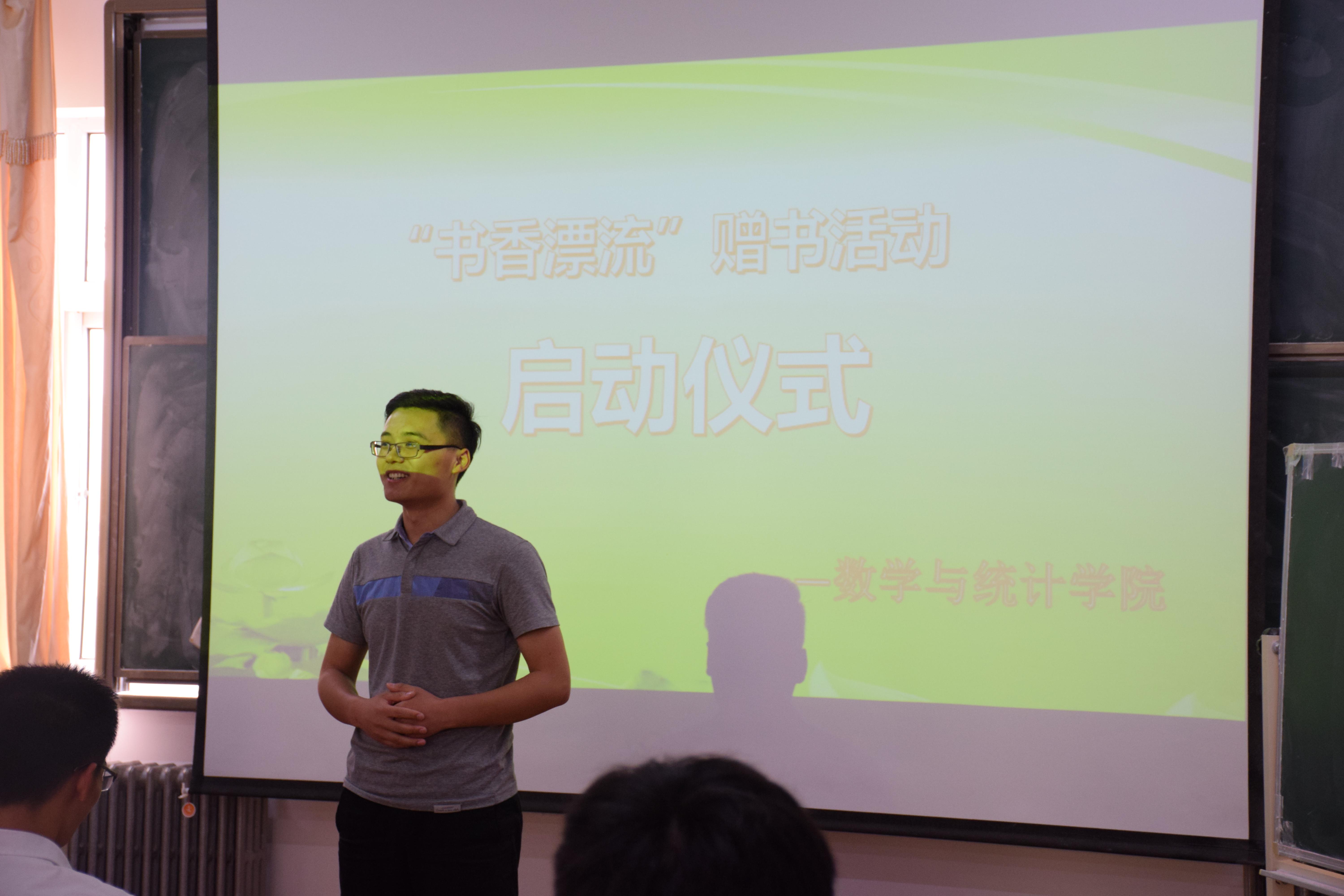 5月20日下午,数学与统计学院团委书记王彦参加“书香漂流”活动启动仪式,耿德发、韩世涛代表毕业生发言,张如会、王乾代表其他年级同学发表了感言并向他们赠送了纪念册。进仪式结束后,同学们有秩序的完成了第一批书籍的领取。