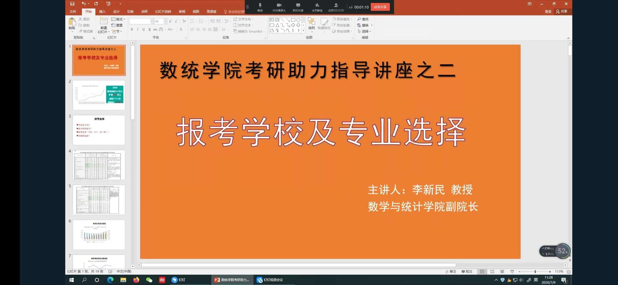 为帮助同学们备战2020年考研,7月9日,YABO鸭脖官网通过钉钉线上直播的方式召开主题为“考研学校及专业选择”考研助力系列讲座。讲座由学院副院长李新民主讲,2017级考研同学参加。