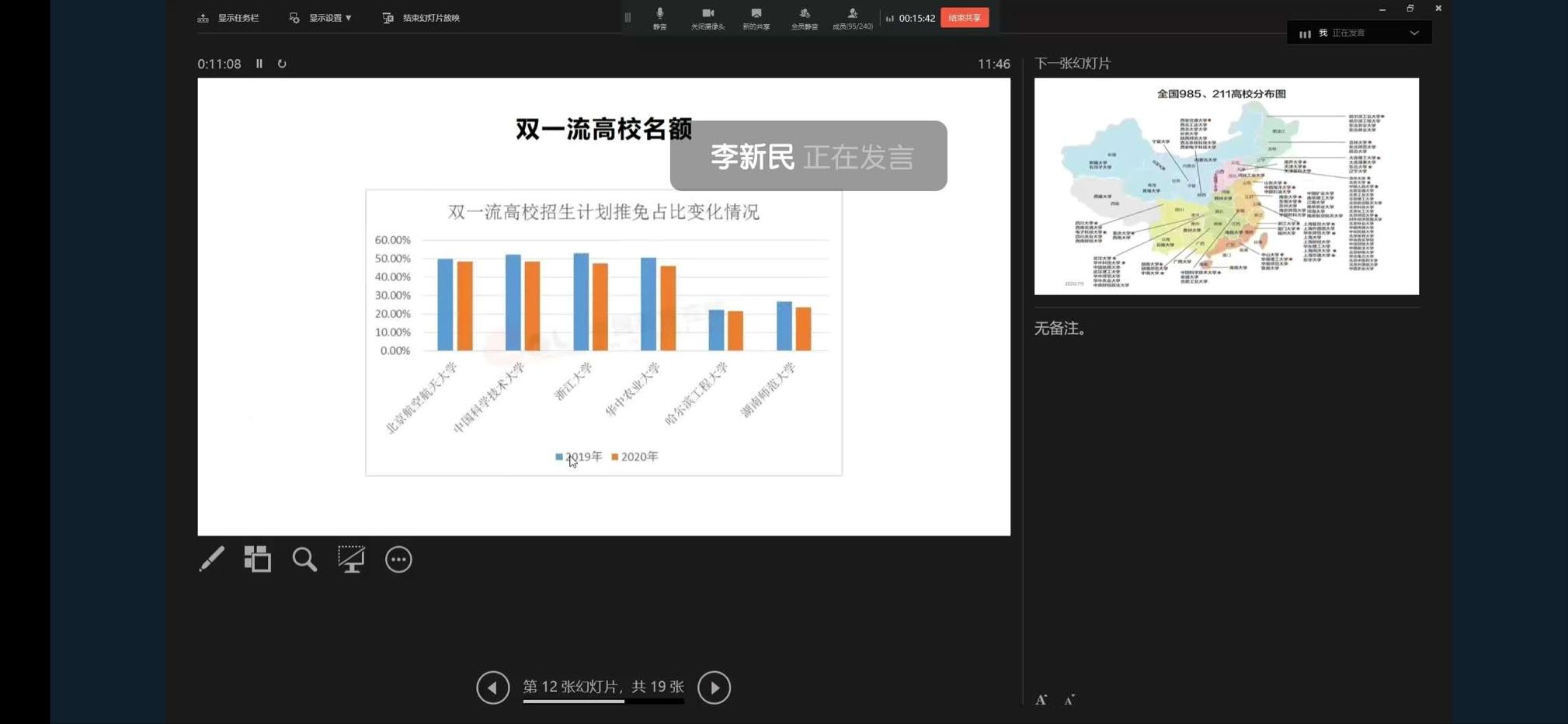 李新民列举历年考研报考数据,对学校与地域的选择两方面进行了分析,通过图表及数据总结出一些地域学校的考研难度,并强调了填好第一志愿的重要性。同时李新民对专业选择方面是就业还是考博提出了自己的建议,让同学们一定要在了解自己与报考意向学校的实际情况下,谨慎选择,合理规划;最后他提醒大家要尽量避免报考“扎堆”。