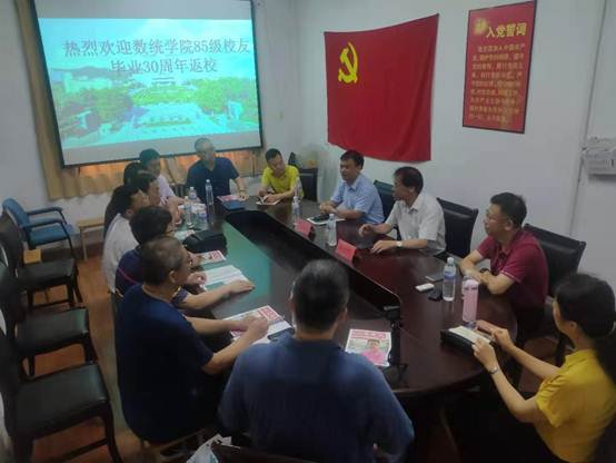 7月14日上午,YABO鸭脖官网在励行楼218会议室举办85级校友毕业30周年返校座谈会,学院党委书记姜永杰、副书记、院长高红伟、党委副书记张雪蕾、85级校友、现任青大数据科学与软件工程学院党委书记郭振波等十名校友参加座谈会。会议由校友代表郭振波主持。