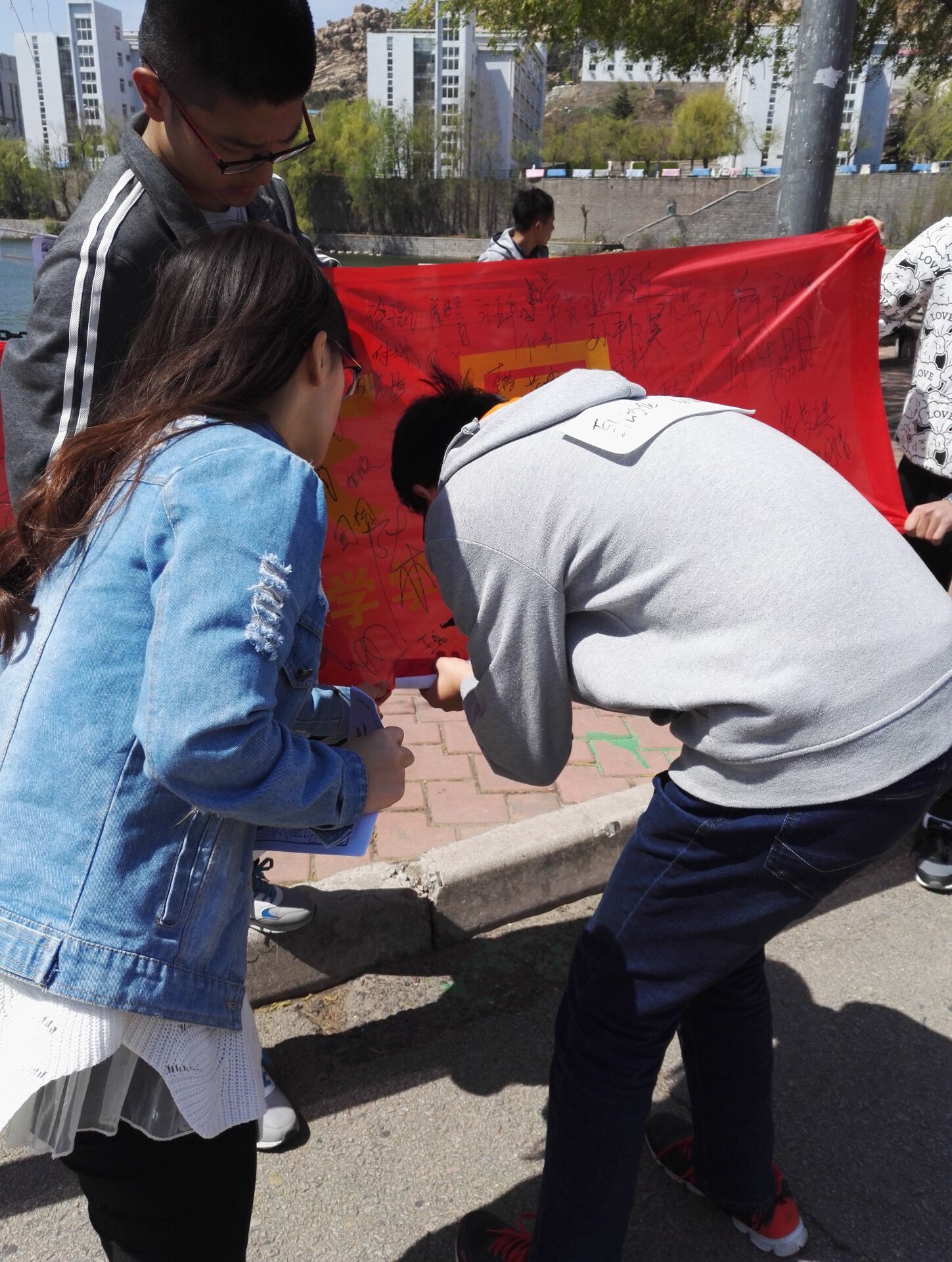 2016年4月17日,YABO鸭脖官网义工队举办了以“情系食品安全,心铸和谐家园”为主题的签字活动。为了进一步让广大同学意识到食品安全对我们每一个人的重要性,达到真正的“吃得放心”,除了政府部门加强监督以外,我们每一个消费者都应该提高对食品安全的认识。 清晨八点半,YABO鸭脖官网义工队队员们举着写着“情系食品安全,心铸和谐家园”的横幅站在剑湖边,在湖边拉起的绳子上挂满了食品安全主题的卡片,并做好了签名的准备工作。随着活动的进行,学生们、老师们以及热心群众都积极踊跃地投入到这次活动中。截至十一点,横幅上已经写满了名字,此次签名活动完美的落下了帷幕