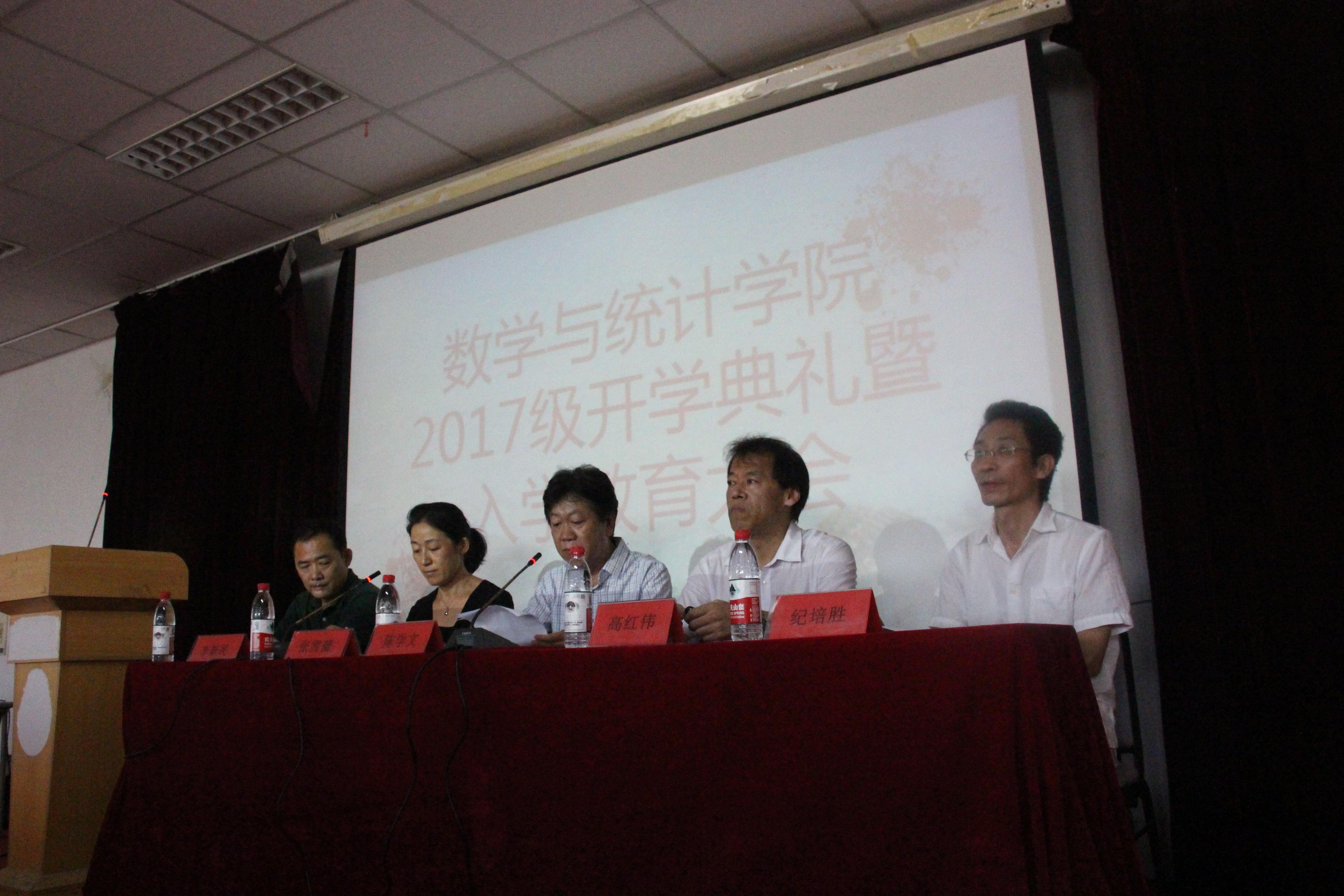 陈学文向全体新生表达祝贺和欢迎,希望同学们志存高远,心怀梦想。他指出,新生在大学期间应脚踏实地,苦读勤学,尽快适应大学学习节奏。他寄语新生要注重全面发展,做有梦想、有决心、有追求的人。高红伟详细介绍了学院的组织机构、学科建设、师资力量、科研水平和教学成果等情况。并分享自身的求学经历,鼓励同学们发奋图强。李新民强调大学阶段的重要性,要求同学们学好专业技能,把考研作为长远目标,以便将来更好地投身社会建设。老生代表严露告诫新生在学校期间要培养自己的自律性,建议新生在认真掌握专业知识的同时,多参加社会实践和数学比赛。李成玉代表2017级全体新生表达了对学院未来学习生活的美好憧憬,表示今后将刻苦学习,提高个人综合素质。