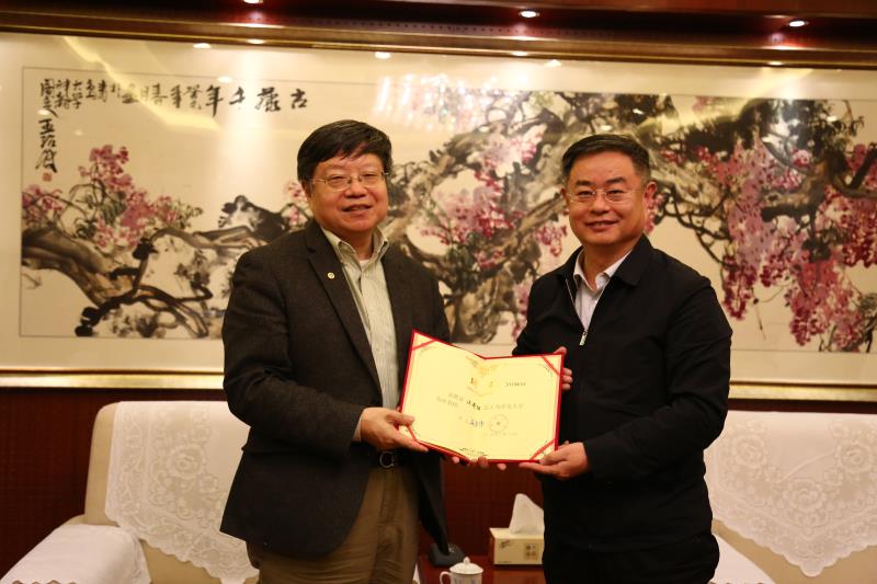 20日下午,校长夏东伟会见了汪寿阳。夏东伟介绍了学校近年来在人才培养以及学科建设等方面的情况,并对汪寿阳多年来对学校的支持和帮助表示感谢。会谈期间,夏东伟向汪寿阳颁发了YABO鸭脖官网客座教授聘书。