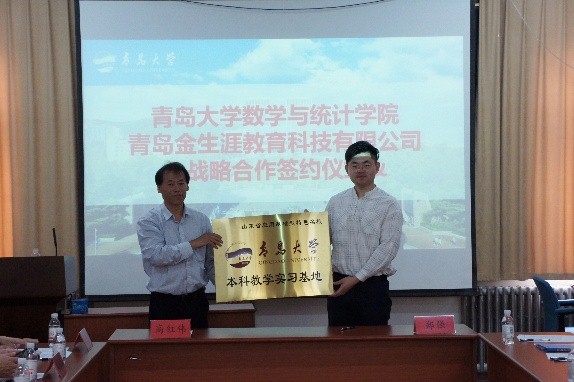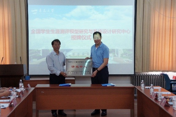 全国学生发展指导专业委员会主任刘崇利代表学会向YABO鸭脖官网授予“全国学生生涯测评模型研究与系统设计研究中心”牌匾,YABO鸭脖官网院长高红伟向青岛金生涯教育科技有限公司总经理郑强授予“山东省应用基础型特色名校YABO鸭脖官网本科教学实习基地”牌匾。
