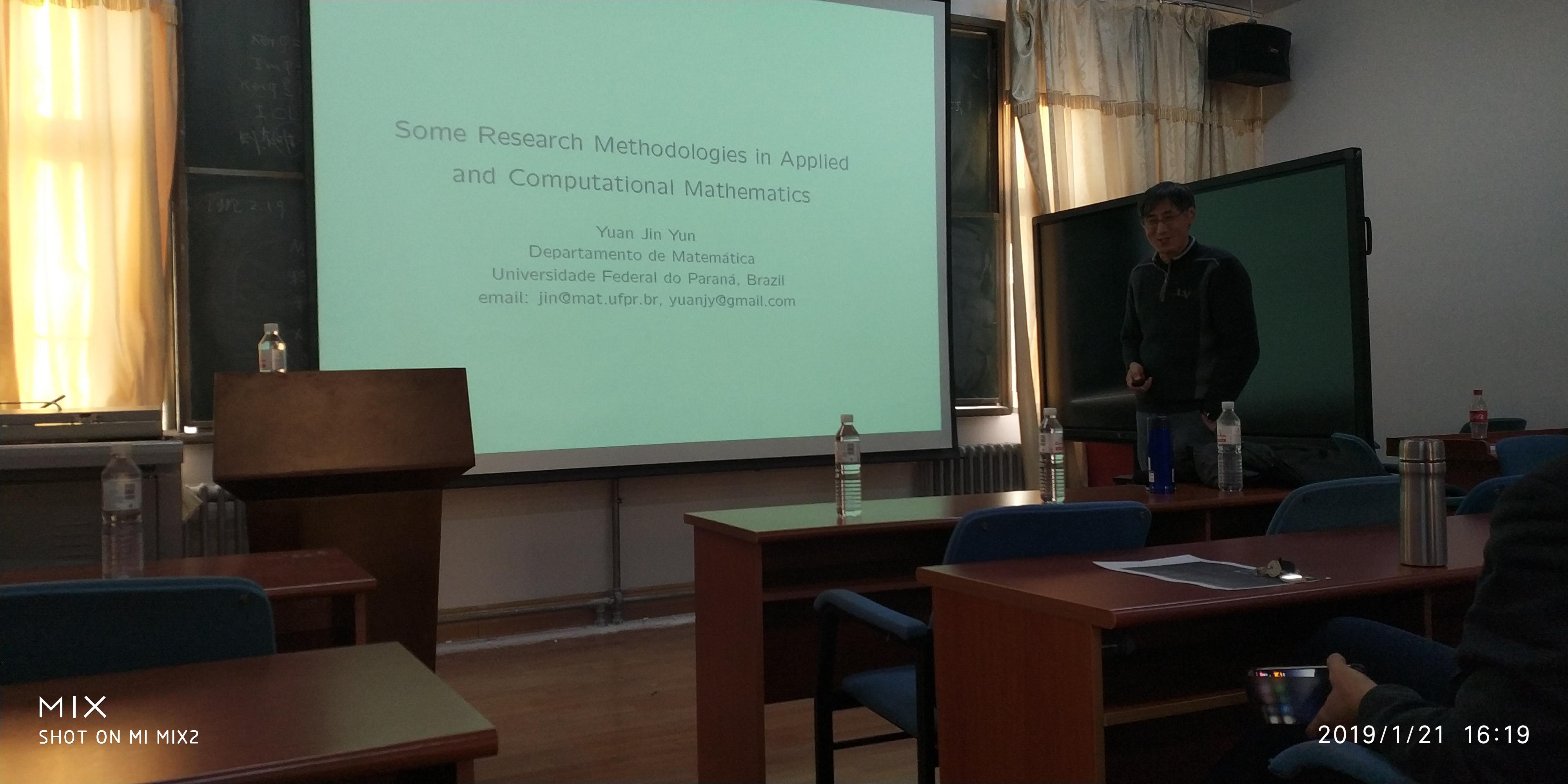 2019年1月21日,巴西科学院院士、巴拉那联邦大学数学系袁锦昀教授应邀来YABO鸭脖官网做了题为“Some Research Methodologies in Applied and Computational Mathematics” 的学术报告,报告由院长高红伟教授主持。