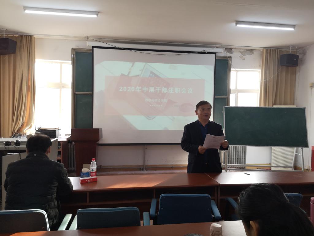 12月17日下午3点,学院2020年度中层干部述职考核会议在励行楼302会议室召开。院党委书记姜永杰,院长高红伟,院党委副书记张雪蕾,副院长李新民,副院长丁洁玉和90余位教师参加本次会议。