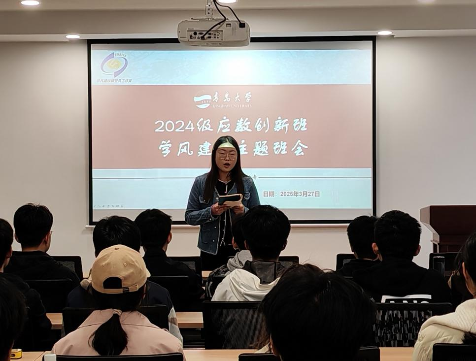 辅导员隋鹏蕾对2024级应数创新班所取得的成绩给予充分肯定,同时就班级未来学风建设提出具体要求,勉励同学们持续保持奋进姿态。